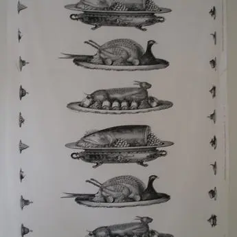 Det tryckta tyget som är formgivet av Amie Stålkrantz och Lasse Frisk har mönster hämtat från illustrationer ur Hagdahls kokbok. Tyget har tryckts på Ljungbergs i Floda.